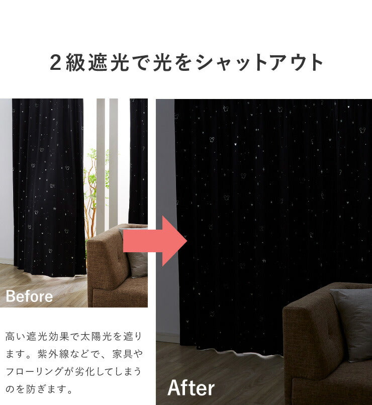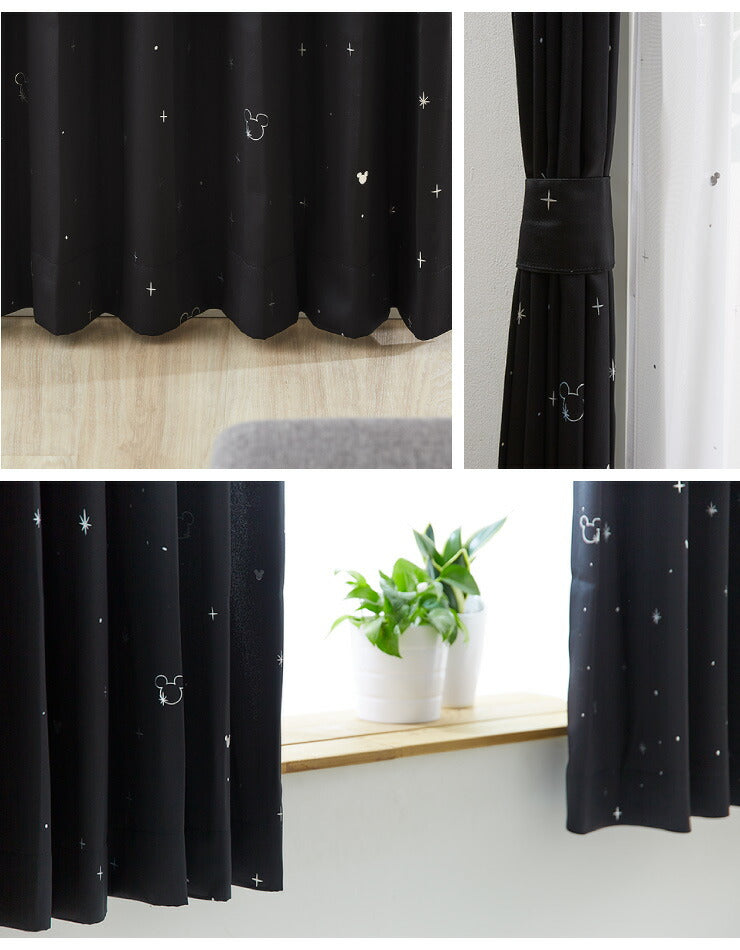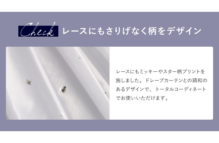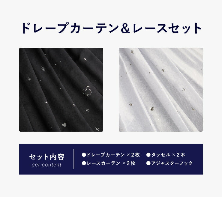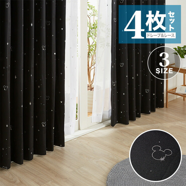 カーテン ディズニー disney 4枚セット ミッキー ミッキーマウス ミッキー柄 スター柄 遮光 ドレープ レースカーテン付き おしゃれ 幅100 洗える ウォッシャブル 新生活 一人暮らし (代引不可)