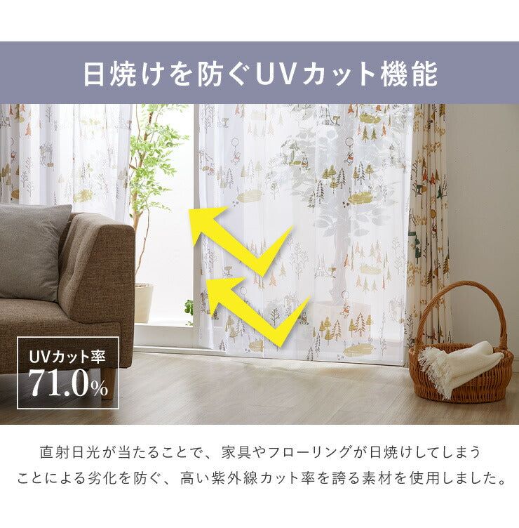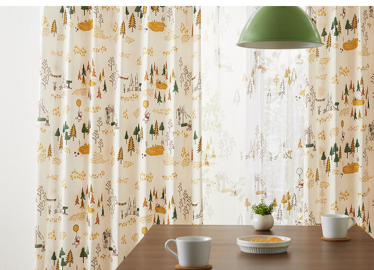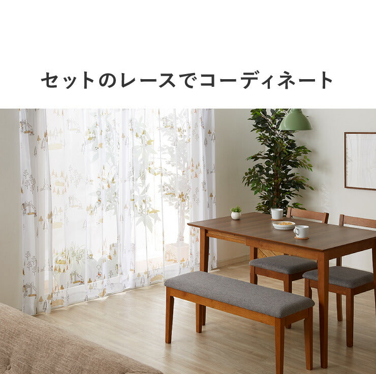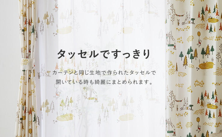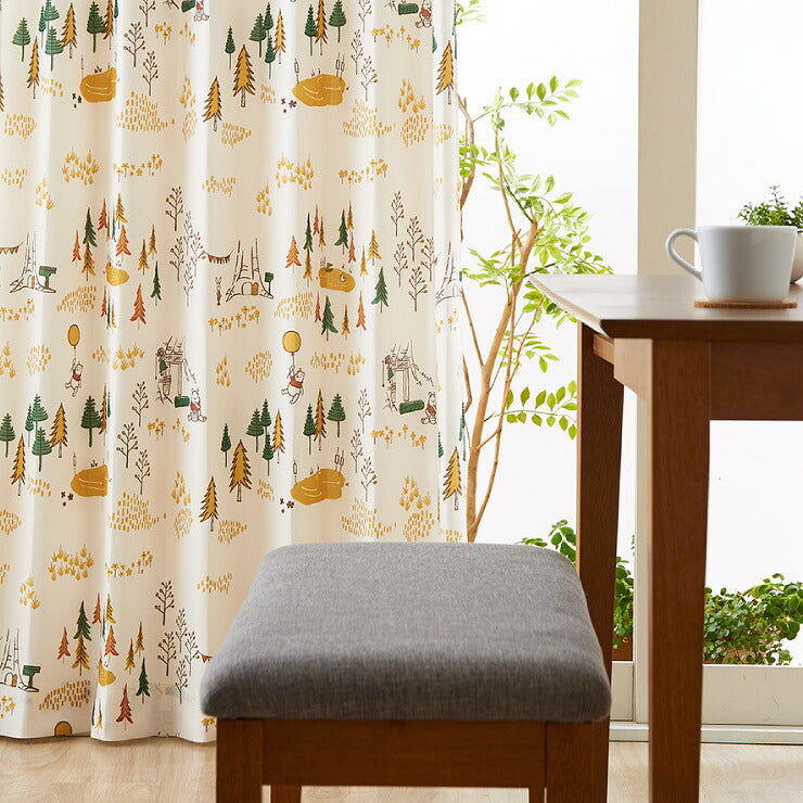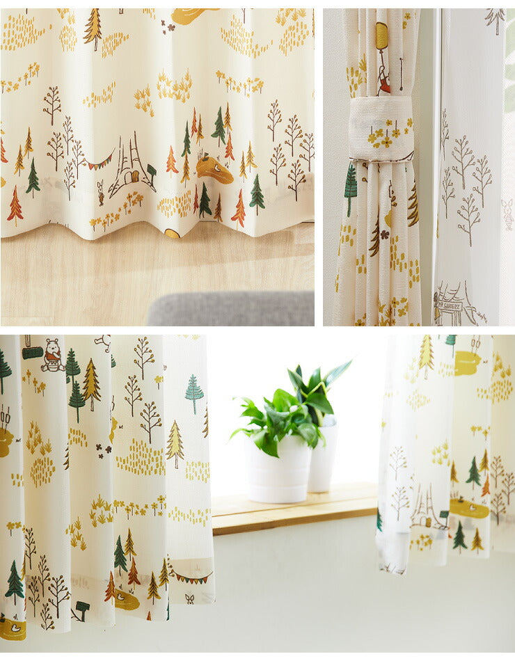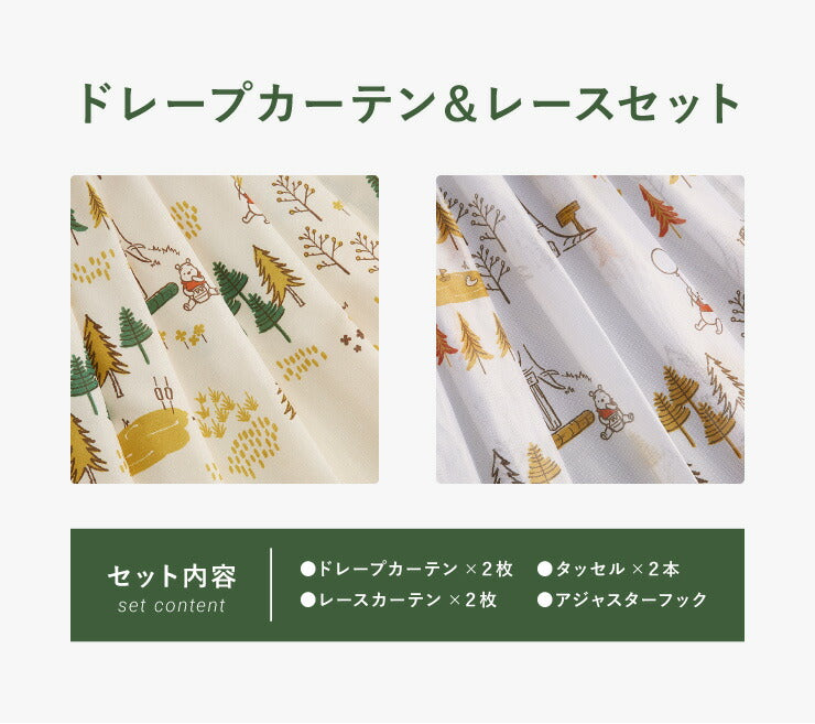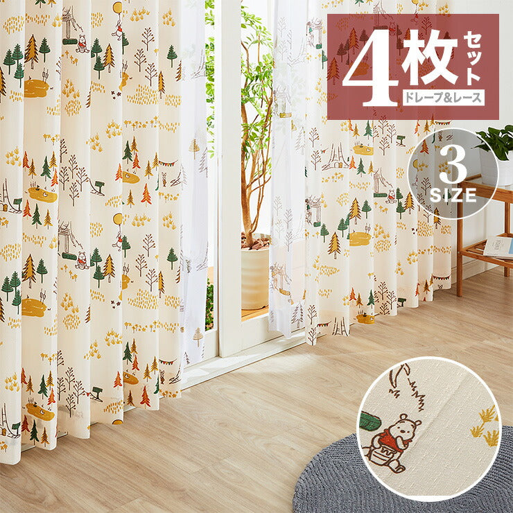 カーテン ディズニー disney 4枚セット くまのプーさん プーさん フォレスト ドレープ レースカーテン付き 幅100 洗える(代引不可)