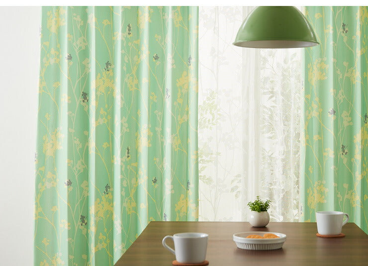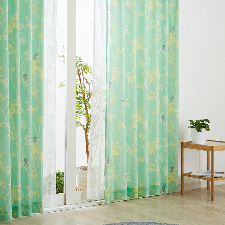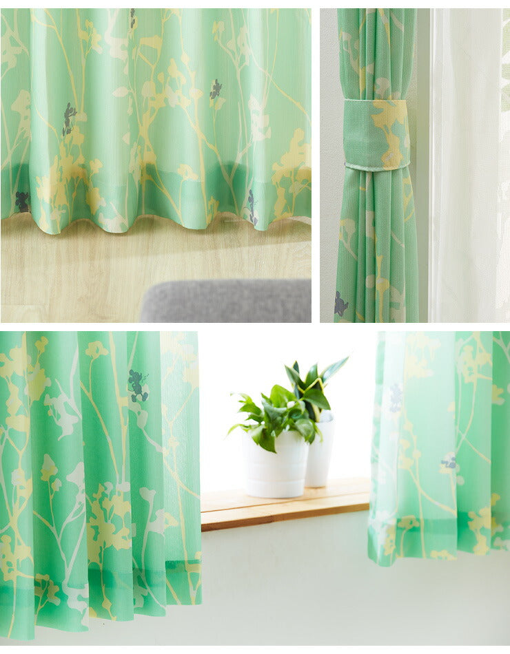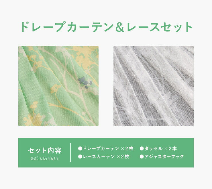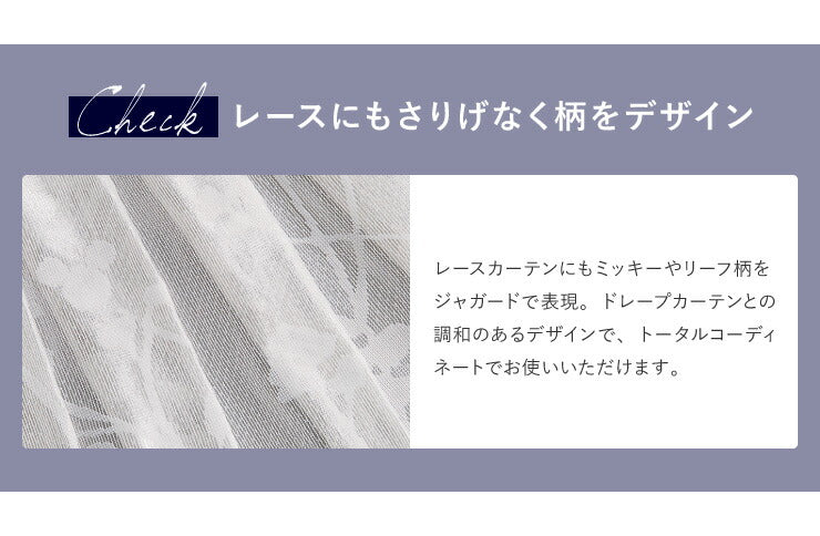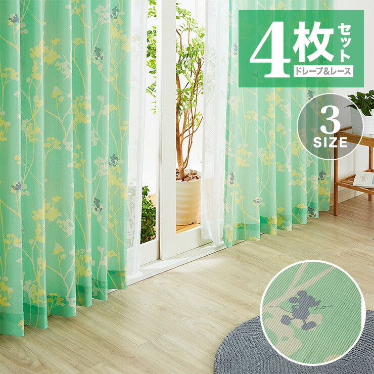 カーテン ディズニー disney 4枚セット ミッキー ミッキーマウス ブランチ柄 ドレープ レースカーテン付き 幅100 洗える(代引不可)
