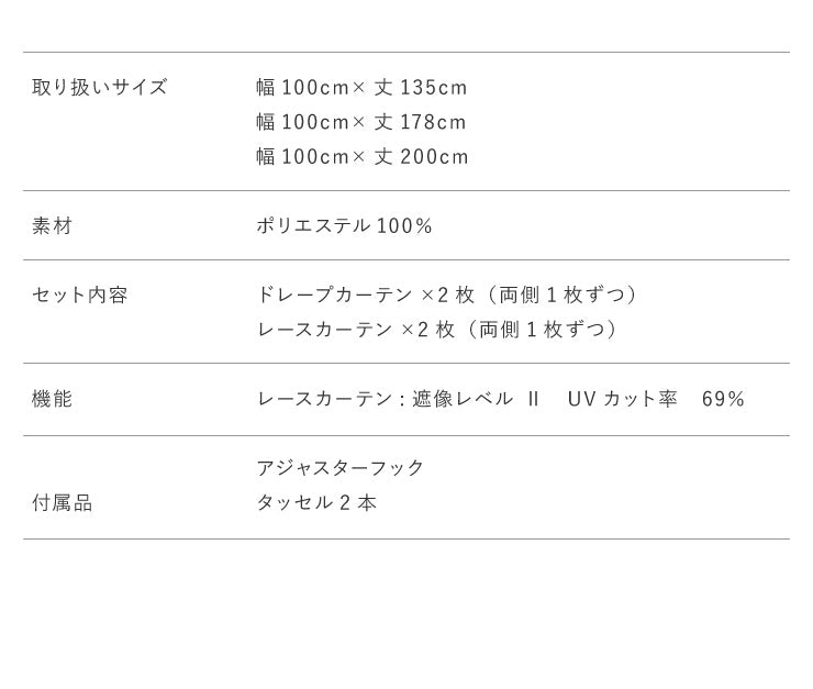 レースカーテン×2枚(両側1枚ずつ)