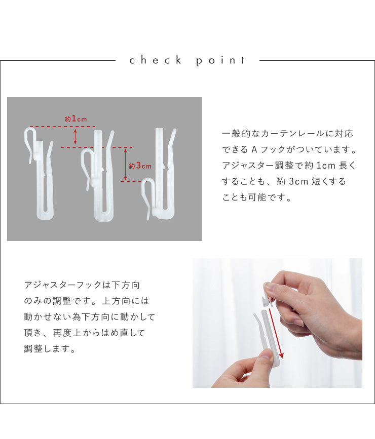 アジャスターフック付きで、丈の調整が簡単にできます。