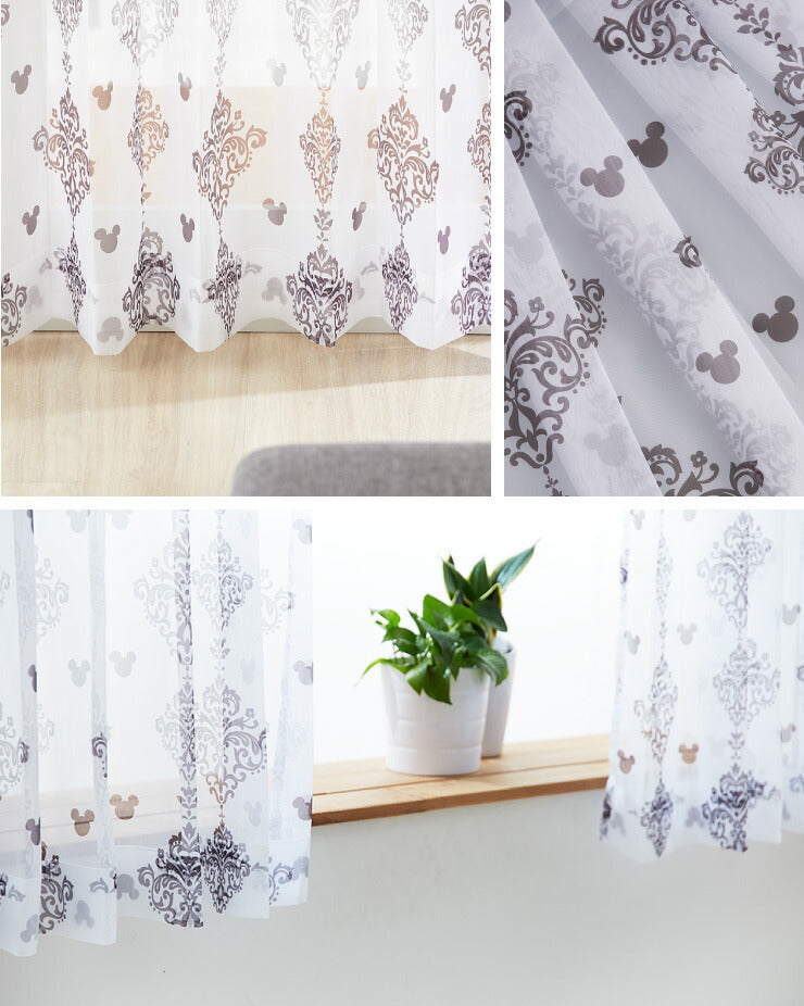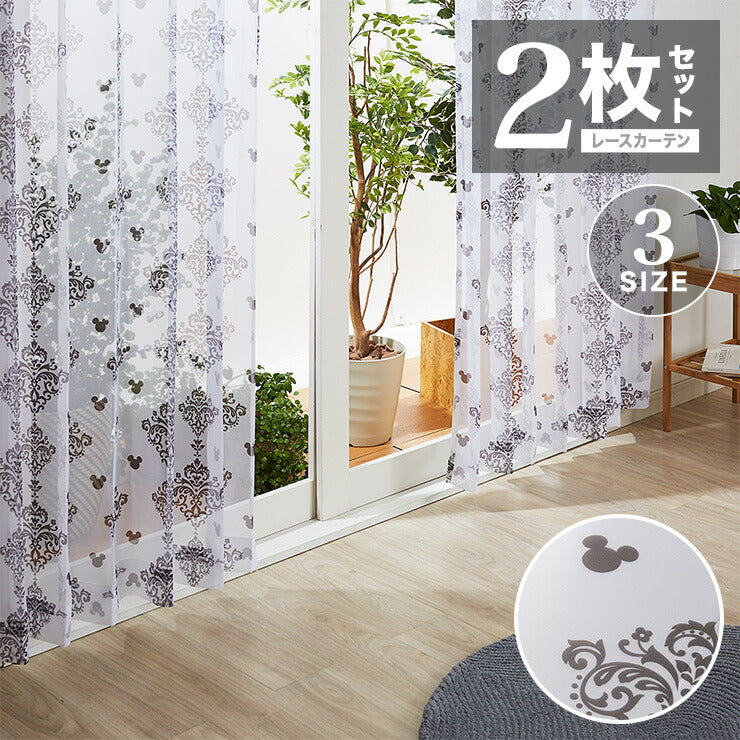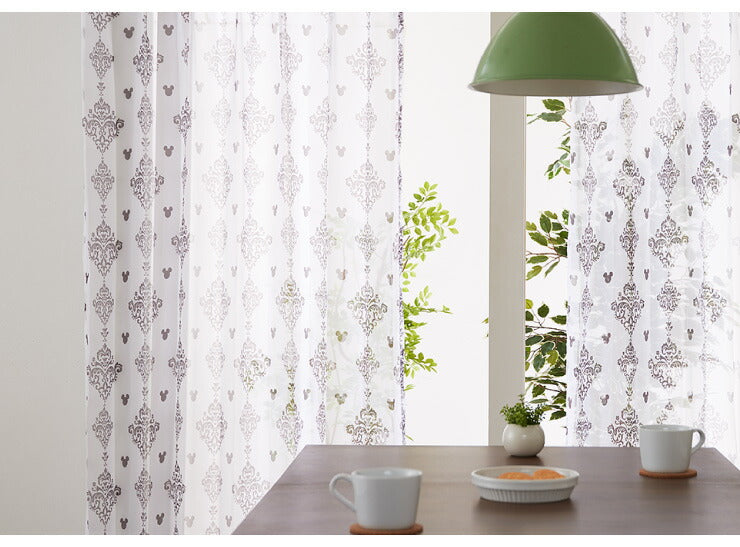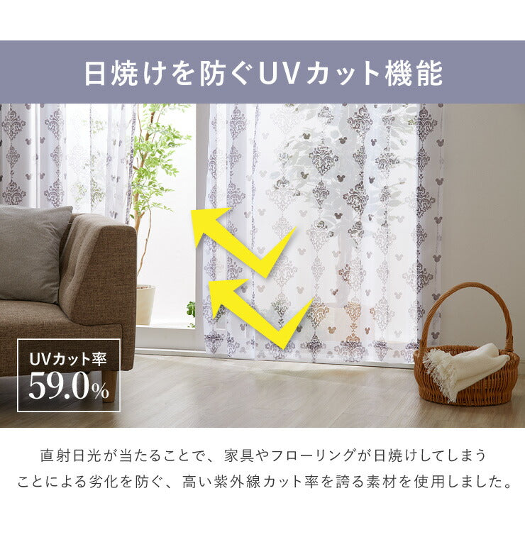 レースカーテン ディズニー disney 2枚セット ミッキー ミッキーマウス オーナメント 遮像 UVカット カーテン 幅100 洗える(代引不可)