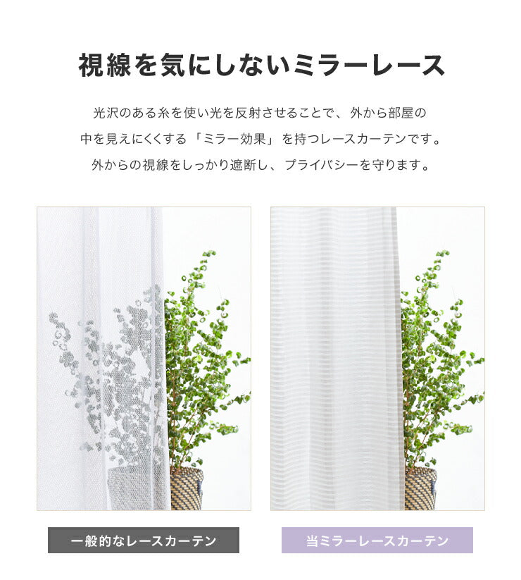 ミラーレースカーテン 高機能 幅100cm 2枚組 通風性 採光性 遮像 遮熱 UVカット レースカーテン カーテン 多機能 省エネ(代引不可)