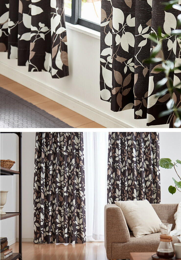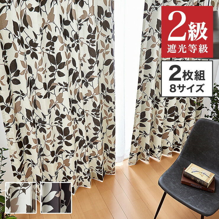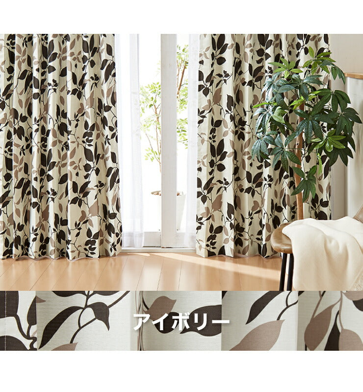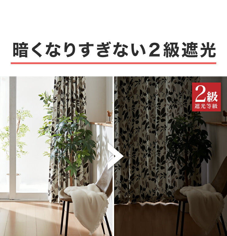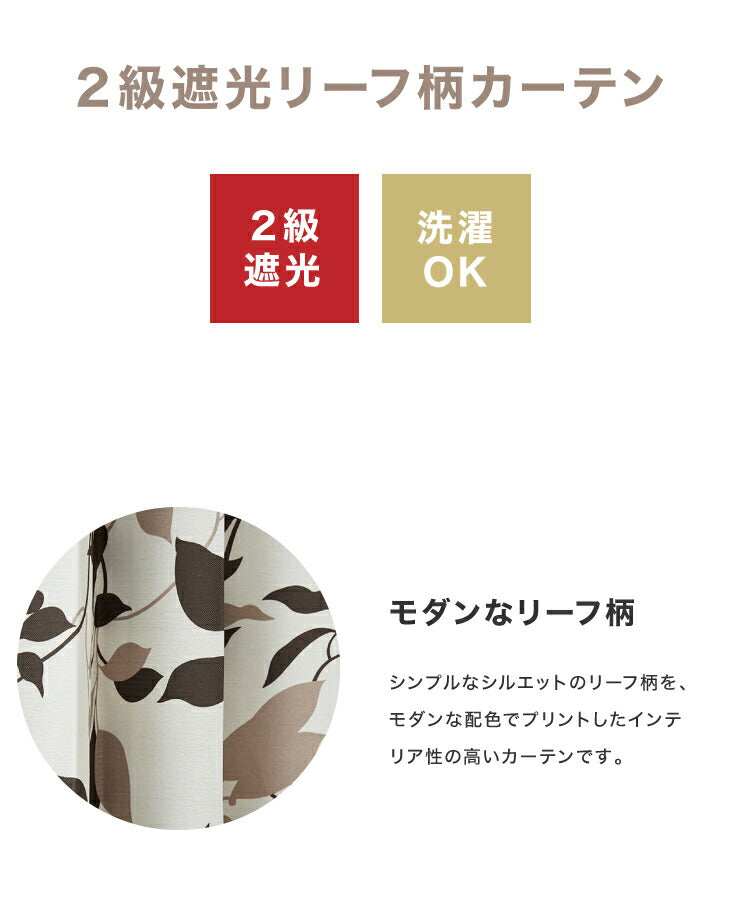 遮光カーテン 【2カラー×8サイズ】 モダンリーフ 遮光2級 ウォッシャブル カーテン 洗える 北欧 おしゃれ(代引不可)