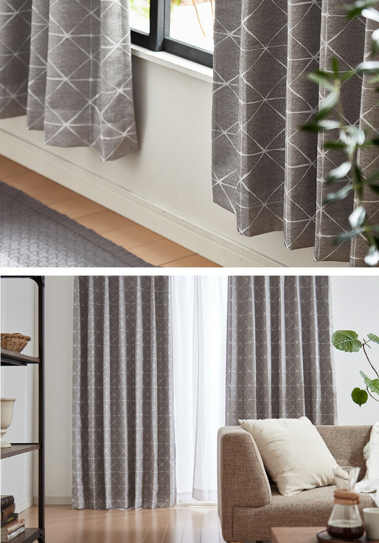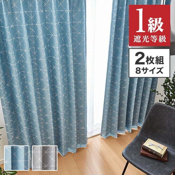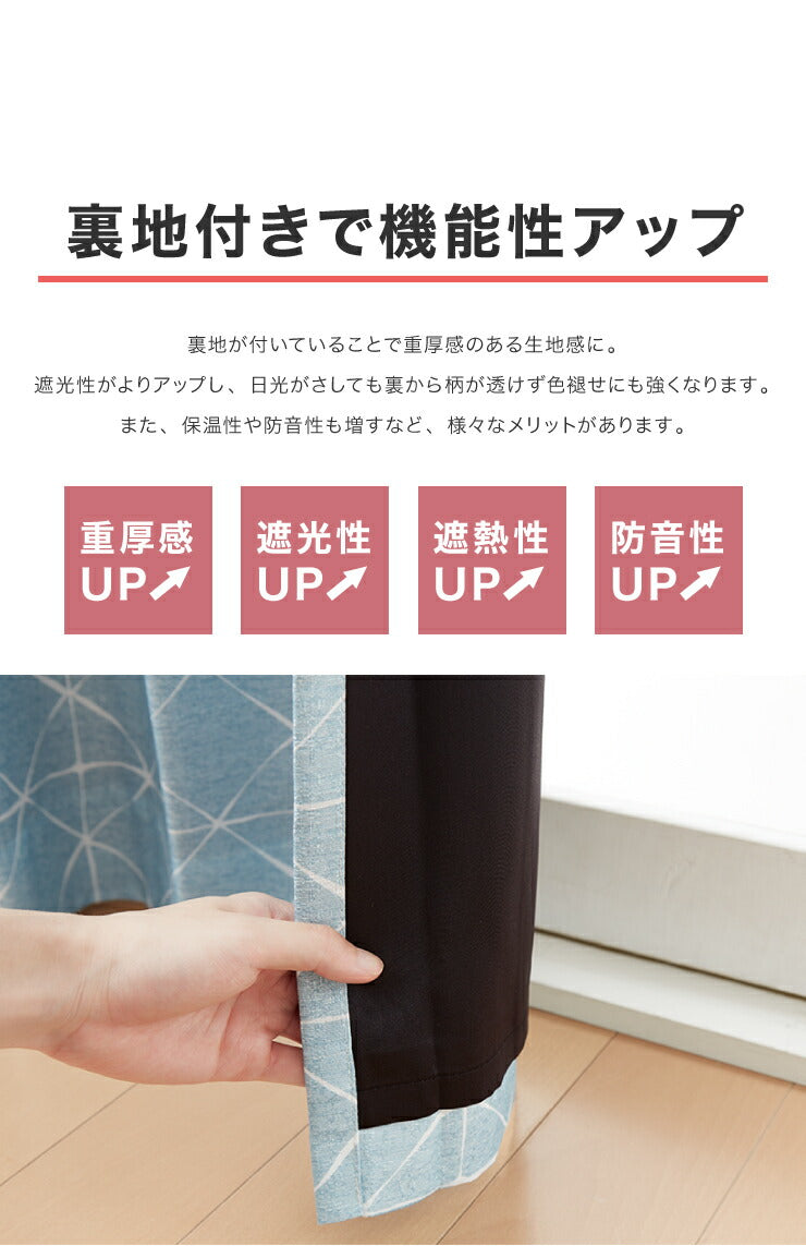 一級遮光カーテン 【2カラー×8サイズ】 スクエア柄 遮光1級 ウォッシャブル 裏地付き カーテン 洗える シンプル 北欧 おしゃれ(代引不可)
