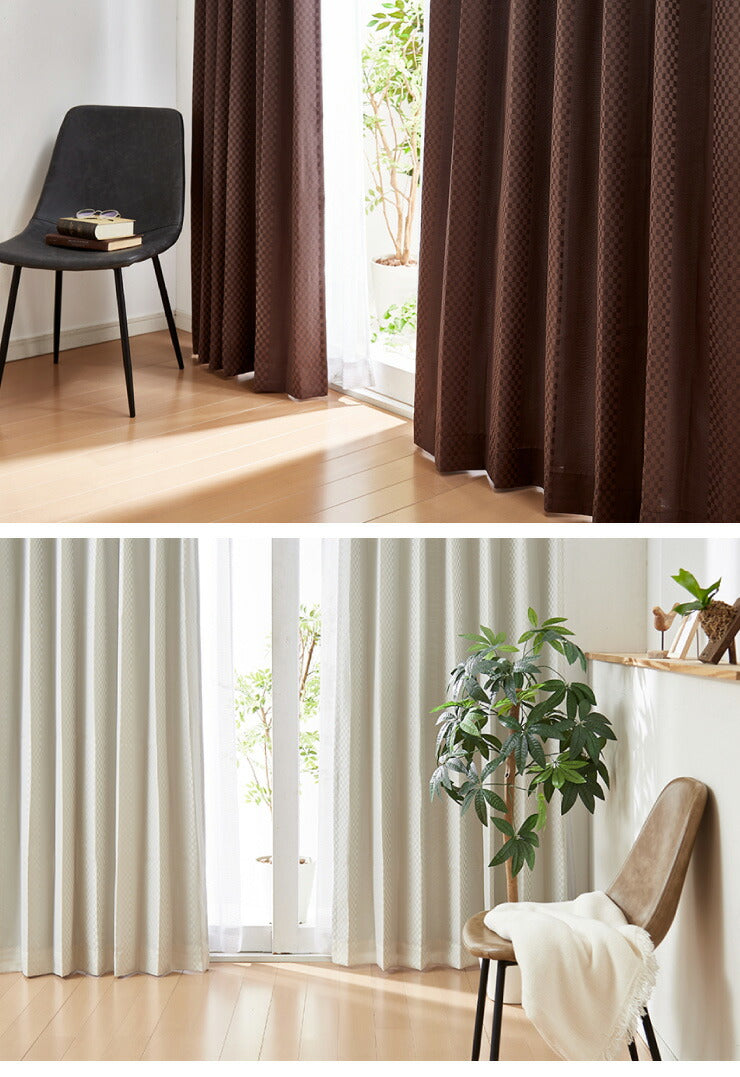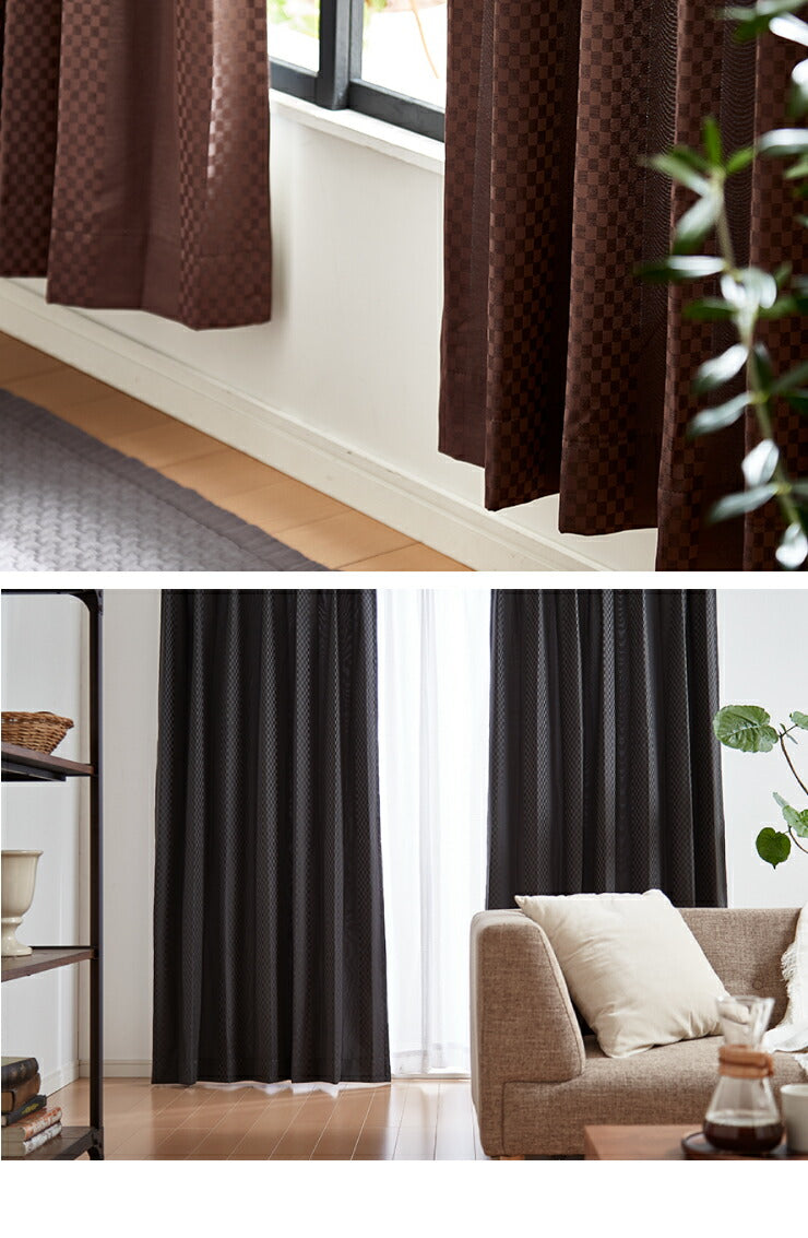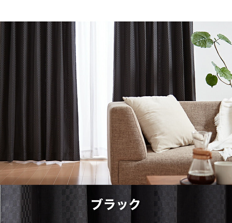 遮光カーテン 【3カラー×8サイズ】 柄出し縫製 チェック&無地 遮光3級 ウォッシャブル 裏地付き 形状記憶 カーテン 洗える 北欧(代引不可)