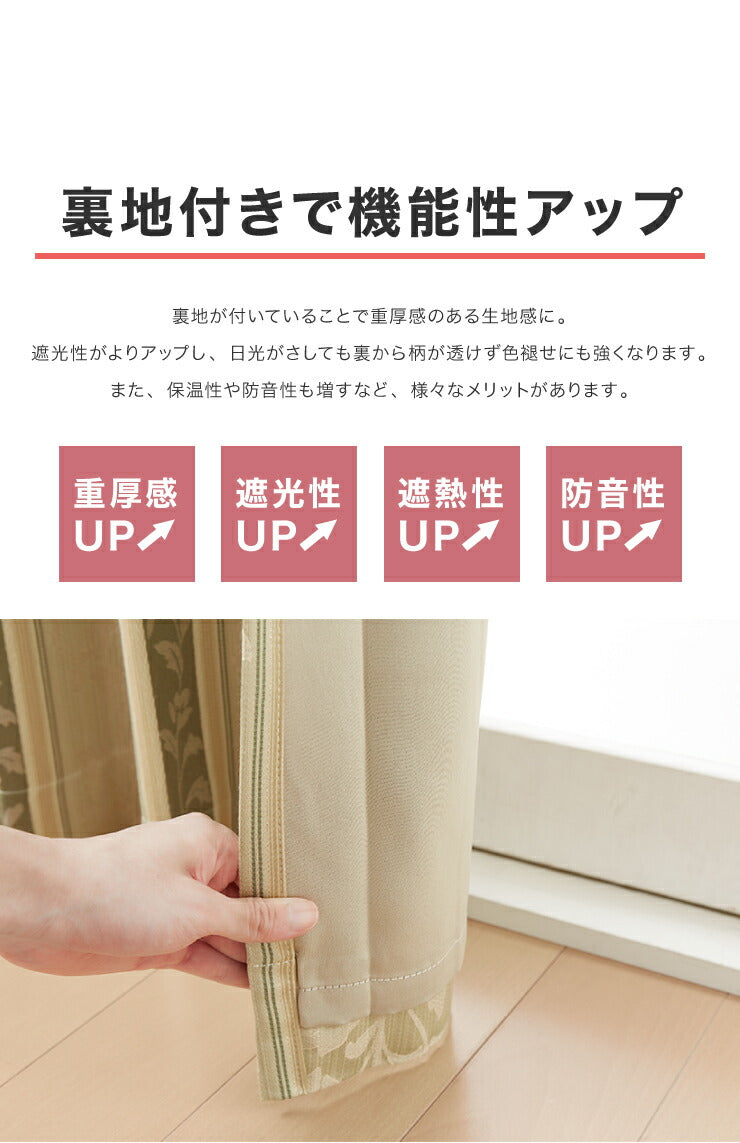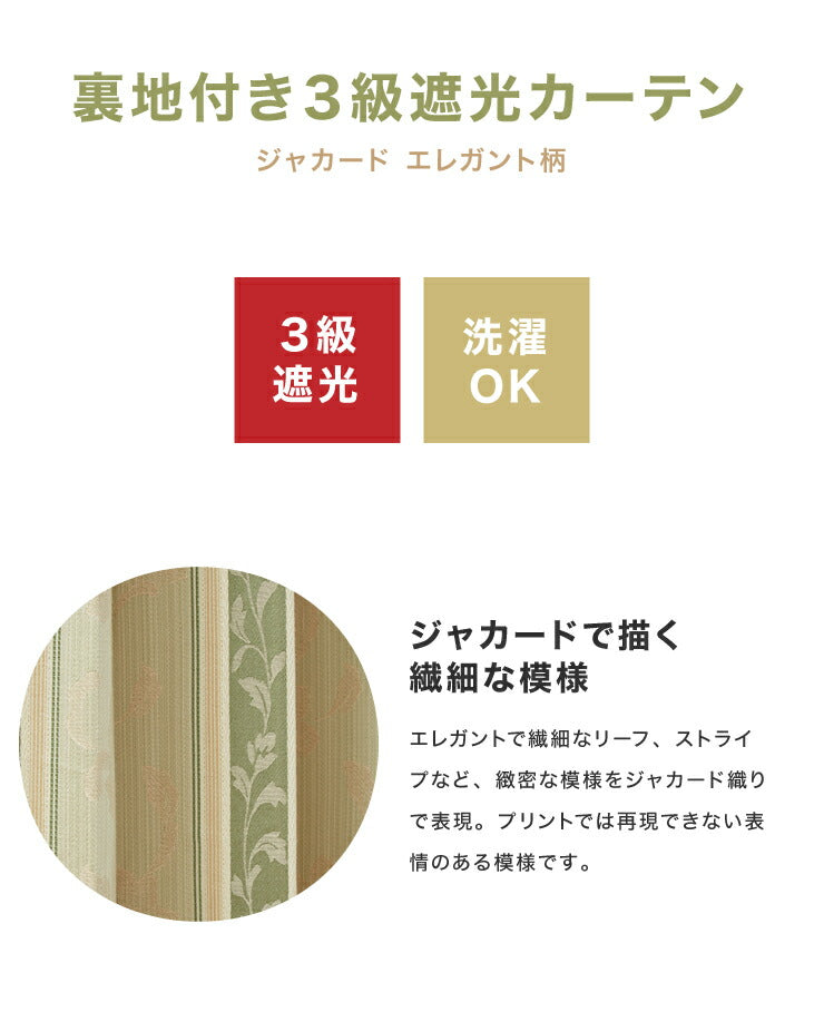 遮光カーテン 【2カラー×9サイズ】 ジャガード エレガント 遮光3級 ウォッシャブル 裏地付き 形状記憶 カーテン 洗える 北欧(代引不可)