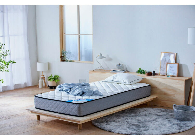 厚さ22cmのポケットコイルマットレスです。コイルがポケットに包まれ独立しているので、複数の点で身体を支え、体圧分散性に優れています。振動や横揺れが少なく、自然な寝姿勢へ導きます。エッジサポート仕様で、耐久性をアップしています。表生地は抗菌・防臭、防ダニ加工を施しています。ロール状に圧縮梱包してあるので、持ち帰りや搬入が簡単です。1日程度で本来のサイズに復元します。(※復元後は、元のロール状態に戻すことができません。)