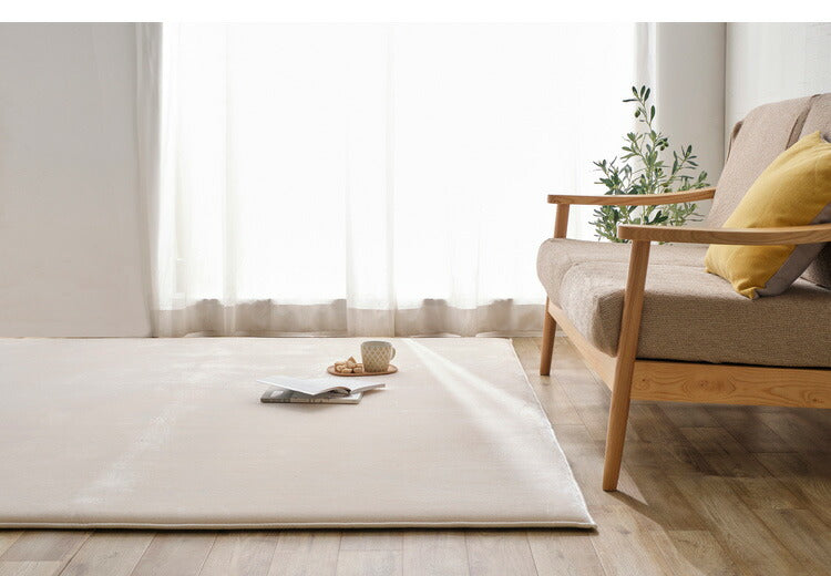 厚さ30mmの極厚ウレタンで床つきを感じさせないボリュームのあるラグです。もちっとした踏み心地で、表地はマイクロファイバーを使用し、なめらかでやわらかい手触りです。裏面にすべり止め加工を施しているため、ラグがずれにくく安心してご使用いただけます。遮音効果で気になる足音などの生活音を抑えられます。オールシーズン快適に使用できます。ホットカーペット対応です。輸送・持ち運びがしやすい圧縮梱包を行っています。開梱すると、折りじわやウレタンの潰れによるゆがみが生じる場合がありますが、使用しているうちに解消されます。