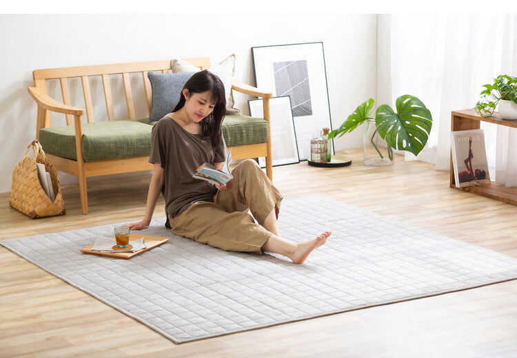 シャリ感のある心地よい肌触りの麻混ラグです。ナチュラルテイストで夏らしい涼感を演出します。梨地織により、シンプルで深みのある色合いになっています。中材には消臭効果のあるウレタンを使用しています。裏面にすべり止めが付いているので、ラグがずれるのを防ぎます。オールシーズン快適にお使いいただけます。床暖房、ホットカーペット対応です。手洗い可能で、清潔を保てます。