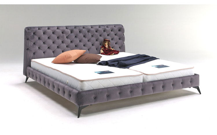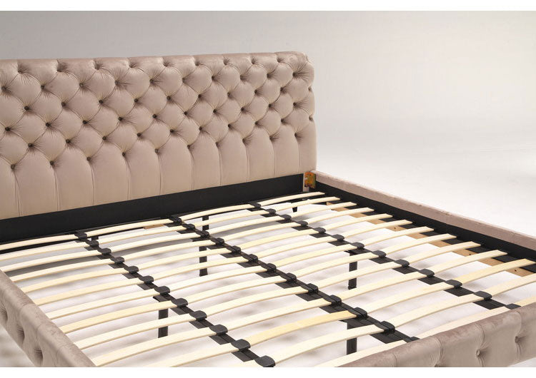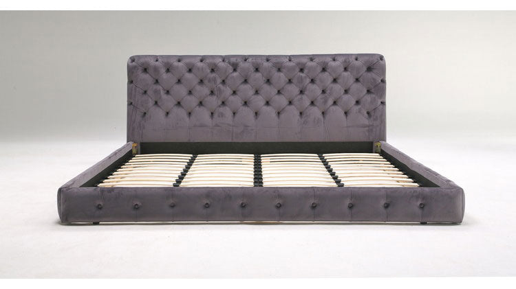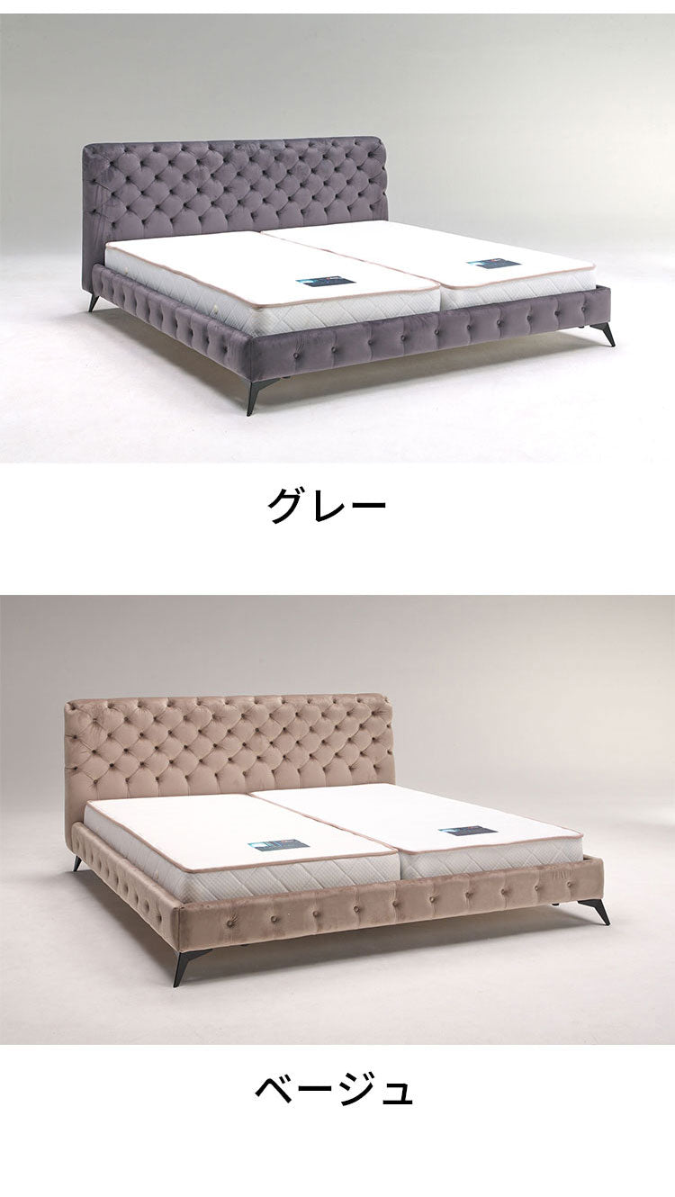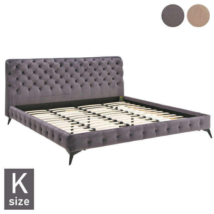 ベッドフレーム キング ベロア調ヘッドボード キングサイズ すのこベッド ベッド フロアベッド フレーム 寝具 インテリア フレーム ベロア アイアン脚 フロアタイプ チェスターフィールド調(代引不可)