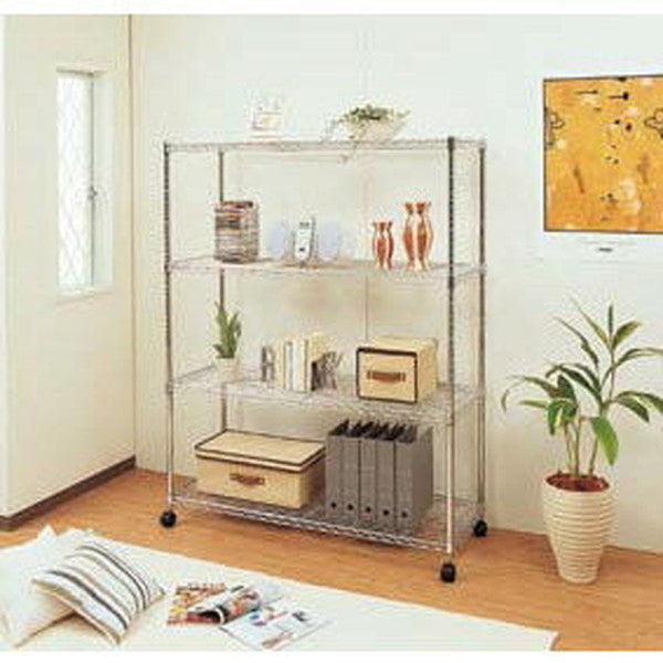 ■棚の高さは自由に変えることができます。移動に便利なキャスターと、常設用としてアジャスターが付いています。