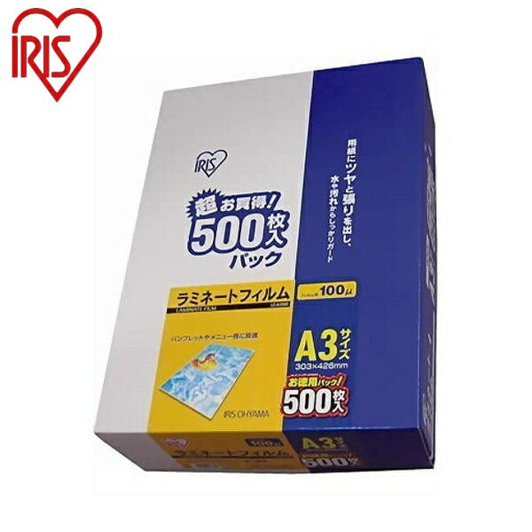 アイリスオーヤマ ラミネートフィルム A3 500枚入 100μ LZ-A3500 ラミネートフィルム 500枚 A3サイズ 100ミクロン IRIS OYAMA(代引不可)