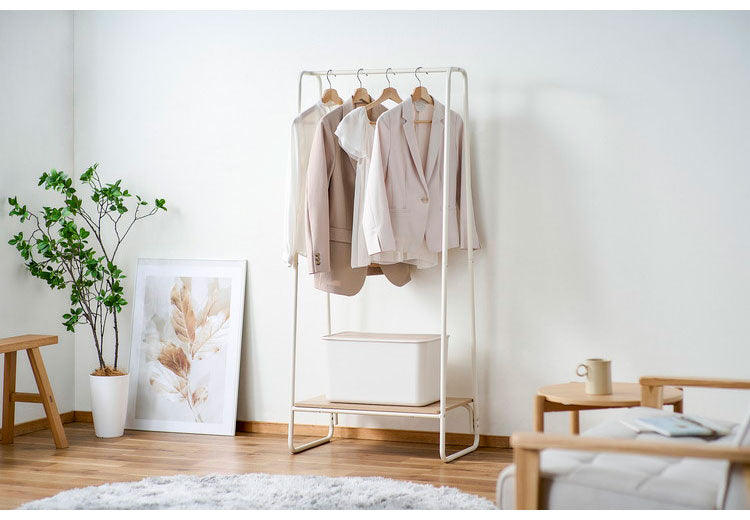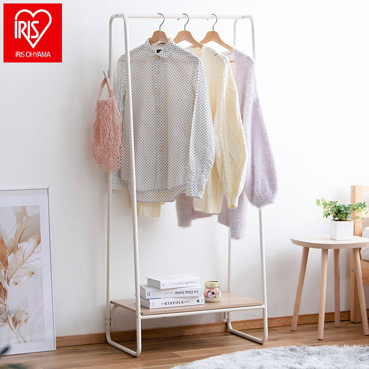 シワなく衣類を収納するのに適したデザイン性のあるスタイルハンガーです。ハンガーパイプには衣類をかけて収納し、棚板には帽子やカバンなどのファッション小物の収納ができます。