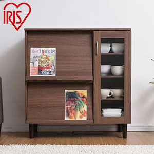 キャビネット ロータイプ 北欧 ブラウン キッチンキャビネット KBN-9390 キッチンボード 食器棚 台所 レンジ台 カップボード スライド おしゃれ アイリスオーヤマ(代引不可)