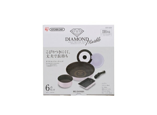 アイリスオーヤマ フライパンセット IH 6点セット 着脱ハンドル ダイヤモンドコートパンマーブルIH用6点セット ISN-SE6 IRIS OYAMA キッチン 調理用品 キッチンツール(代引不可)