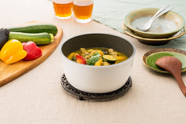 基本仕様 セット内容 フライパン26cm、なべ16・20cm、エッグパン、ガラスふた16・20cm、PEシールふた16cm・20cm、マルチハンドル 満水容量(約) フライパン26cm:2.7L、なべ16cm:1.5L、なべ20cm:2.6L、エッグパン:1.3L 対応熱源 IH・ガスコンロ・ラジエントヒーター・オーブン・その他の電気ヒーター対応(※電子レンジでは使用できません。)
