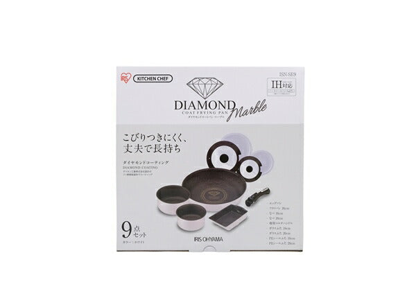 アイリスオーヤマ フライパンセット IH 9点セット 着脱ハンドル ダイヤモンドコートパンマーブルIH用9点セット ISN-SE9 IRIS OYAMA キッチン 調理用品 キッチンツール(代引不可)