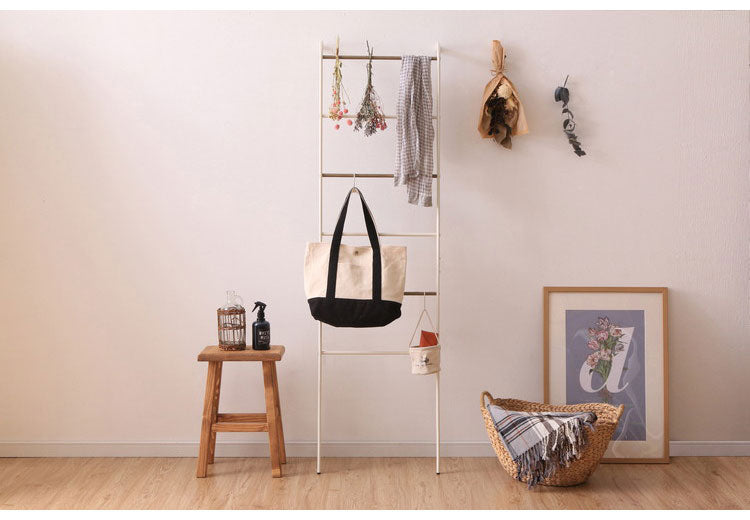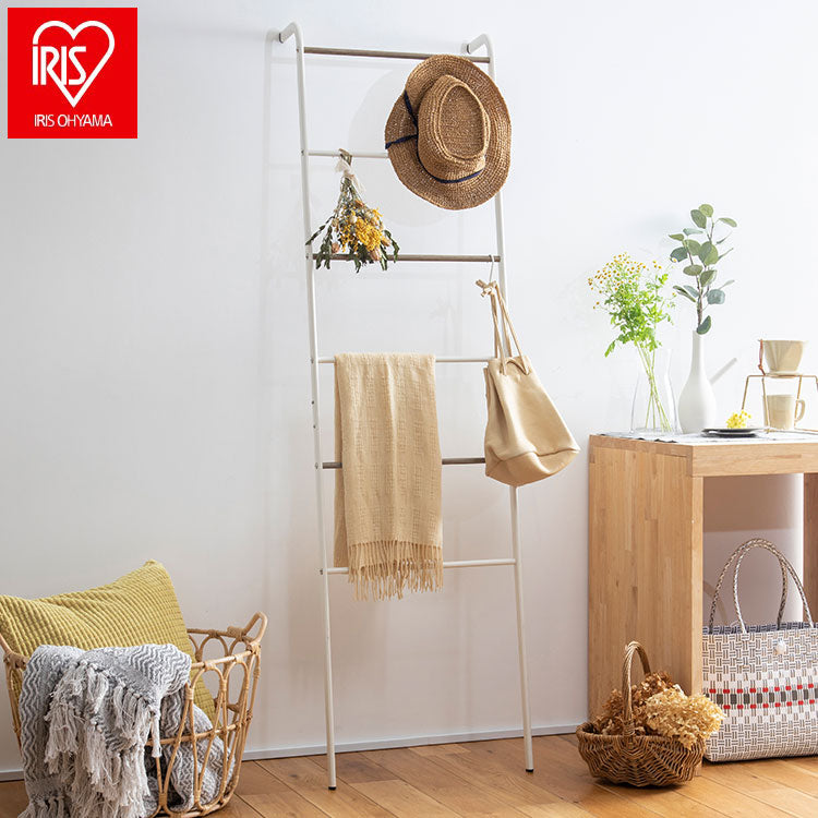 省スペースでも気軽に設置できるデザイン性のあるスタイルハンガーです。ラダータイプは、壁に立てかけるだけの簡単設置です。衣類やバッグ、帽子、ストールなどの小物が掛けられます。植物や写真などのディスプレイとしても活用できます。ランドリーや玄関にも置けます。便利なS字フックが2個付いています。壁との設置面にはキズ防止キャップが付いています。簡単に組み立てができます。
