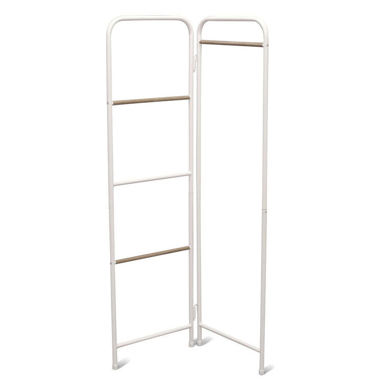省スペースでも気軽に設置できるデザイン性のあるスタイルハンガーです。ワンピースやコートなどの長物と、衣類やバッグ、帽子、ストールなどの小物を掛けることができます。お気に入りの衣類を飾るディスプレイ場所としても活用できます。使用しないときは、折りたたんでコンパクトに収納可能です。便利なS字フックが2個付いています。簡単に組み立てができます。使用時の推奨開き角度は90度です。