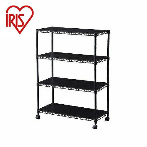 アイリスオーヤマ カラーメタルラック ウッドボード付き CMM-75104B ブラック IRIS OHYAMA(代引不可)