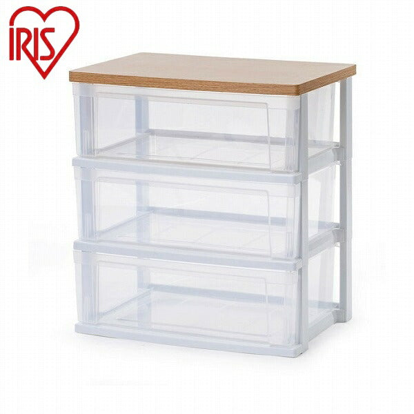 アイリスオーヤマ ウッドトップチェスト チェスト 3段 NSW-543WT ウッドトップチェスト タンス たんす 北欧 3段 おしゃれ クリア タンス たんす チェスト 木天板 押し 収納ボックス IRIS OYAMA(代引不可)