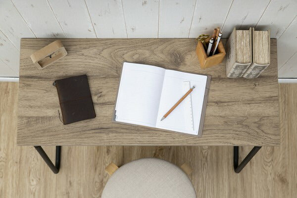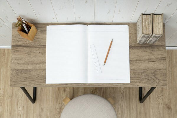 A4サイズのノートはしっかり置けて、スリムな奥行きのデスクです。ワイドはノートパソコンとノートを横に置いても大丈夫なサイズに設計しています。軽量なので移動も簡単です。ミシン台などにもぴったりです。