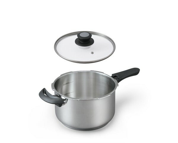 【片手鍋】本体:ステンレス鋼(クロム18%、ニッケル8%)、はり底:ステンレス鋼(クロム16%)(はり底含む底の厚さ4.5mm) 【圧力ふた】本体:ステンレス鋼(クロム18%、ニッケル8%)、樹脂部:フェノール樹脂、パッキン:シリコーン 【ガラスふた】本体:強化ガラス(全面物理強化) 【中かご・中かご台】本体:ステンレス鋼(クロム18%、ニッケル8%)