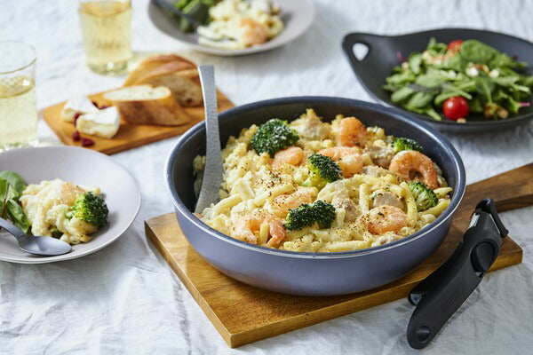 基本仕様 セット内容 フライパン26cm、炒めなべ25cm、なべ16cm・20cm、エッグパン、ガラスふた16cm・20cm・26cm、PEシールふた16cm・20cm、マルチハンドル2本 満水容量(約) フライパン26cm:3.3L、炒めなべ25cm:3.2L、なべ16cm:1.4L、なべ20cm:2.4L、エッグパン:1.1L エッグパン寸法(約) 20×14cm 対応熱源 IH・ガスコンロ・ラジエントヒーター・オーブン・その他の電気ヒーター対応(※電子レンジでは使用できません。)