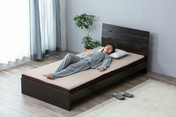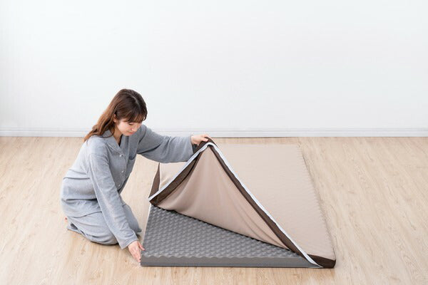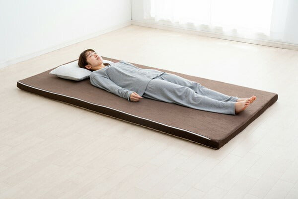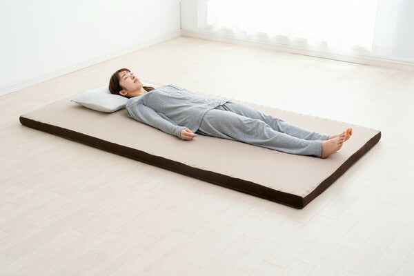 高反発ウレタンフォームと低反発ウレタンフォームの2層構造で、2種類の寝心地を選べるリバーシブルタイプのマットレスです。高反発は波形のウレタンフォーム(プロファイル加工)で、体が沈み込みすぎないようしっかりサポートします。低反発は体にフィットし、体圧を分散します。吸水速乾に優れたニット生地、やわらかな肌触りのパイル生地なので、オールシーズン使用できます。継ぎ目のない1枚タイプです。ロール状に圧縮梱包してあるので、持ち帰りが簡単です。(※復元後は、元のロール状態に戻すことができません。)