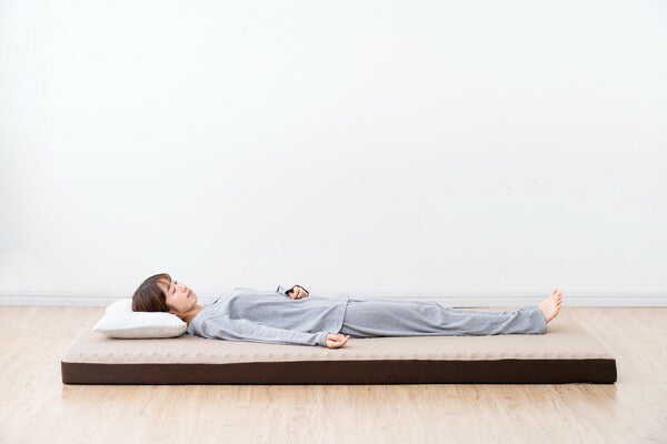 高反発ウレタンフォームと低反発ウレタンフォームの2層構造で、2種類の寝心地を選べるリバーシブルタイプのマットレスです。高反発は波形のウレタンフォーム(プロファイル加工)で、体が沈み込みすぎないようしっかりサポートします。低反発は体にフィットし、体圧を分散します。吸水速乾に優れたニット生地、やわらかな肌触りのパイル生地なので、オールシーズン使用できます。継ぎ目のない1枚タイプです。ロール状に圧縮梱包してあるので、持ち帰りが簡単です。(※復元後は、元のロール状態に戻すことができません。)