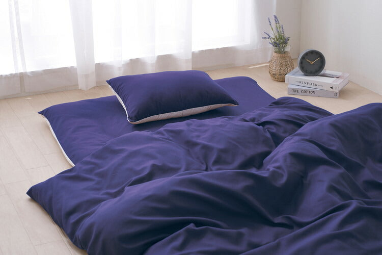 敷き布団と除湿シートがセットになったすぐに使える9点セットです。敷き布団は3kgの中綿でふっくらとした寝心地です。布団の下に敷くだけで湿気を吸湿する除湿シート付きです。干して乾燥させることで、何度も使うことが可能です。カバーは、選べるツートンカラーです。収納や持ち運びに便利なバッグ付きです。