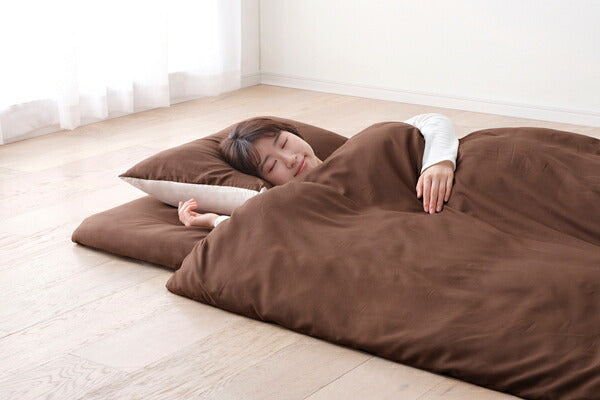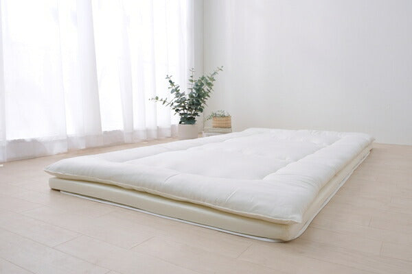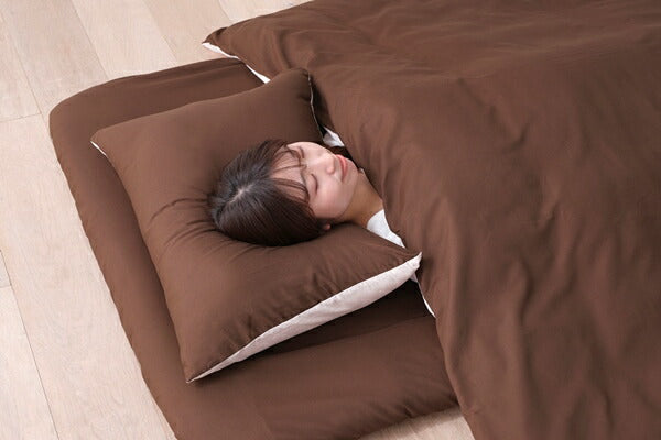 低反発ウレタンフォーム入り敷き布団とマットレスがセットになったすぐに使える充実の10点セットです。低反発ウレタンフォームを使用したことで、もっちりとした寝心地です。敷き布団とマットレスを併せて使用することで、フローリングに直敷きでも底付きが気になりにくいです。布団の下に敷くだけで湿気を吸湿する除湿シート付きです。干して乾燥させることで、何度も使うことが可能です。枕カバー・掛けカバーは、選べるツートンカラーです。収納や持ち運びに便利なバッグ付きです。