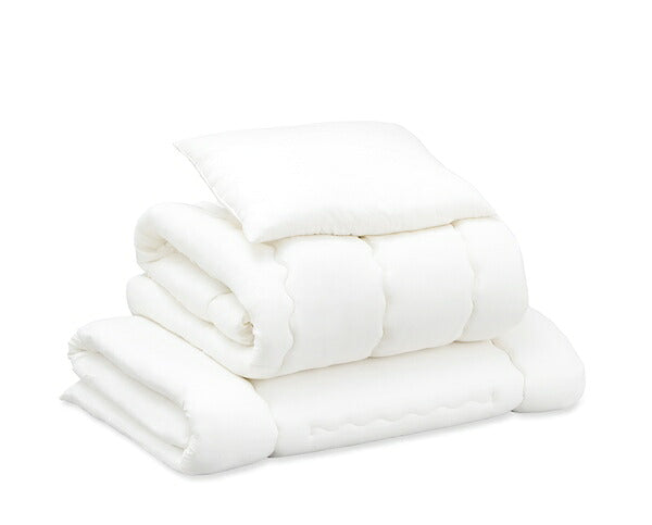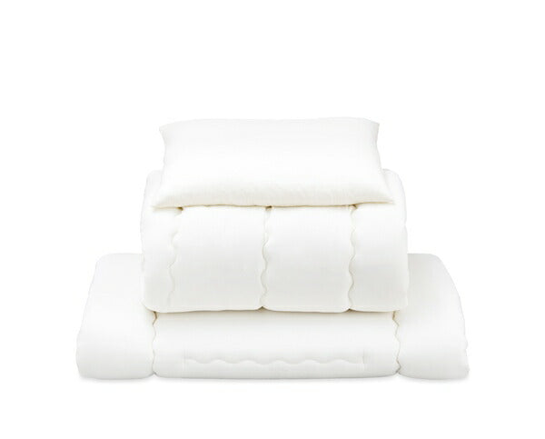 基本仕様 セット内容 掛け布団、敷き布団(低反発ウレタンフォーム入り)、枕(低反発ウレタンフォームチップ入り)、掛け布団カバー、ボックスシーツ、枕カバー2枚、枕パッド、除湿シート、収納バッグ