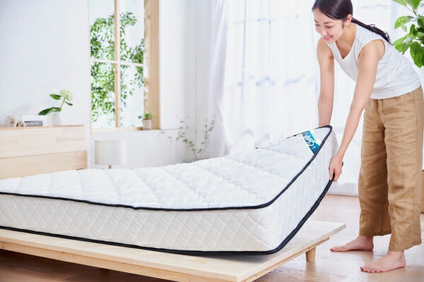 厚さ20cmのポケットコイルマットレスです。コイルがポケットに包まれ独立しているので、複数の点で身体を支え、体圧分散性に優れています。振動や横揺れが少なく、自然な寝姿勢へ導きます。エッジサポート仕様で、耐久性をアップしています。表生地は抗菌・防臭、吸湿性、防ダニ加工を施しています。ロール状に圧縮梱包してあるので、持ち帰りや搬入が簡単です。1日程度で本来のサイズに復元します。(※復元後は、元のロール状態に戻すことができません。)