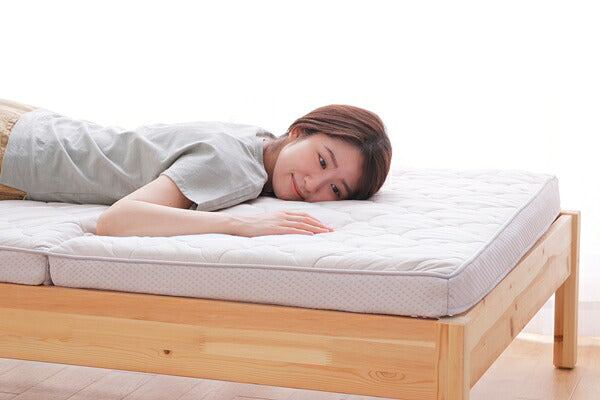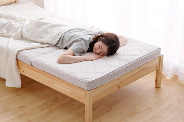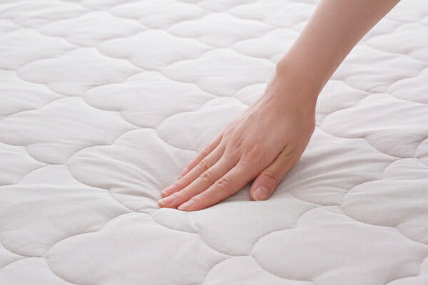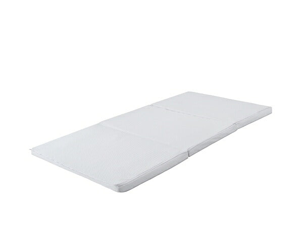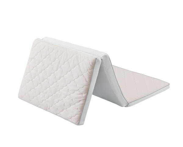 高い保湿性と保温性が特徴のエアリーマットレス Softeです。詰めもの上層部は約2cmの球形状粒わたをシート状に加工したマルーンシートです。軽くてやわらかい風合いはそのままに、片寄りにくく弾力性に優れています。詰めもの下層部は約4.8cmのエアロキューブを使用しています。高反発で身体を支え、体圧を分散します。湿気を逃し快適です。側生地は高い保湿性をもつリフレスを使用しています。セルロース系モイストファイバーで、しっとり、しなやかな風合いが魅力です。ふわふわした優しい肌触りのフェイクファーのボックスカバー付きです。コンパクトに収納できる三つ折りタイプです。