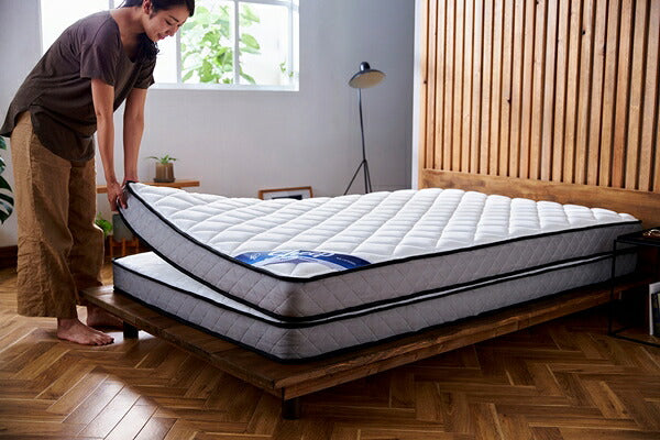 厚さ30cmの2層タイプのポケットコイルマットレスです。コイルがポケットに包まれ独立しているので、複数の点で身体を支え、体圧分散性に優れています。線径の異なるポケットコイルを上段・下段の2層構造にすることで、寝心地を実現しました。振動や横揺れが少なく、自然な寝姿勢へ導きます。表生地は抗菌・防臭、防ダニ加工を施しています。ロール状に圧縮梱包してあるので、持ち帰りや搬入が簡単です。1日程度で本来のサイズに復元します。(※復元後は、元のロール状態に戻すことができません。)