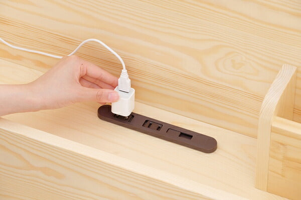 安心の耐荷重350kgの頑丈なすのこベッドです。利便性の高いヘッドボード付きタイプです。きしみを気にせず、寝返りができる高耐荷重設計です。ヘッドボードはブックスタンド、タブレットやスマホスタンドになります。2口コンセントとUSBタイプAポート付きです。通気抜群で湿気が溜まりにくく、オールシーズン快適です。天然木ならではの木目や風合いで木のぬくもりを感じられます。高さが4段階調整可能な継脚が付いています。継脚は取り付け、取り外しが簡単です。ベッド下は収納スペースとして有効活用できます。
