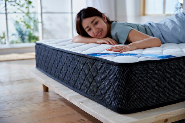 厚さ21cmのかためのポケットコイルマットレスです。コイルがポケットに包まれ独立しているので、複数の点で身体を支え、体圧分散性に優れています。振動や横揺れが少なく、自然な寝姿勢へ導きます。エッジサポート仕様で、耐久性をアップしています。表生地は抗菌・防臭、防ダニ加工を施しています。ロール状に圧縮梱包してあるので、持ち帰りや搬入が簡単です。1日程度で本来のサイズに復元します。(※復元後は、元のロール状態に戻すことができません。)