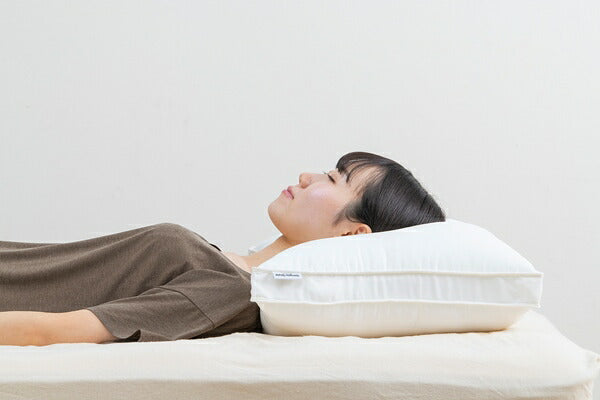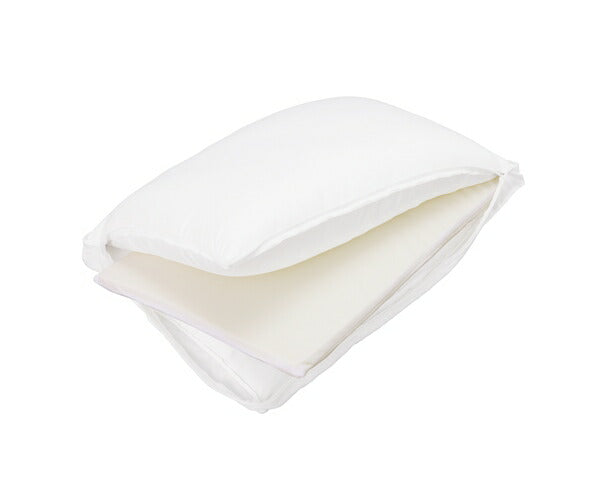 上質な寝心地を追求したホテルライクなまくらです。低反発ウレタンシートを出し入れすることで、高さを2段階調整することができます。まるで羽毛のような軽さと弾力を兼ね備えた柔らかなマイクロファイバーわたが、後頭部から首筋までふんわりやさしく包み込みます。側生地は抗菌・防臭加工が施されています。桃の皮の表面のような風合いを持つピーチスキン加工で、柔らかくなめらかな肌触りです。縁は側生地と統一感のある白でパイピングを施し、高級感のある仕上がりになっています。マチが付いているので型崩れしにくくなっています。ご家庭で手洗い可能なので、清潔を保てます。(ウレタンシートは洗えません。)