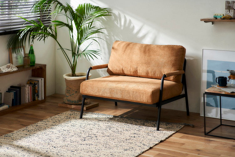 インテリアで人気のコーデュロイ生地のソファです。あたたかみのあるコーデュロイ生地と無機質なスチールフレームを合わせることでインダストリアルテイストになります。座面にはポケットコイルを使用し、適度な反発力とフィット感で長時間座っていても疲れにくく、座り心地抜群です。座面の幅と奥行きが広く、ゆったりくつろぐことができます。アームレストカバーは取り外し可能です。アームレストカバーと背クッションカバーは洗濯可能です。パーツが少なく組み立てが簡単です。組立式なので梱包サイズはコンパクトで、軽自動車でも持ち帰り可能なサイズです。