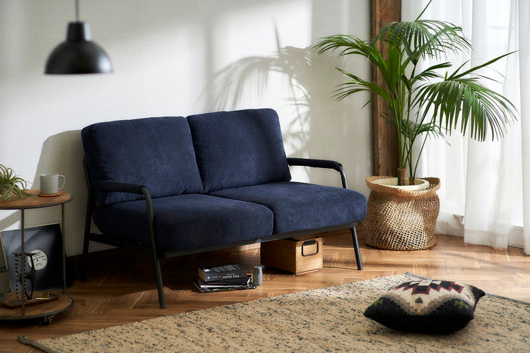 インテリアで人気のコーデュロイ生地のソファです。あたたかみのあるコーデュロイ生地と無機質なスチールフレームを合わせることでインダストリアルテイストになります。座面にはポケットコイルを使用し、適度な反発力とフィット感で長時間座っていても疲れにくく、座り心地抜群です。座面の幅と奥行きが広く、ゆったりくつろぐことができます。アームレストカバーは取り外し可能です。アームレストカバーと背クッションカバーは洗濯可能です。パーツが少なく組み立てが簡単です。組立式なので梱包サイズはコンパクトで、軽自動車でも持ち帰り可能なサイズです。