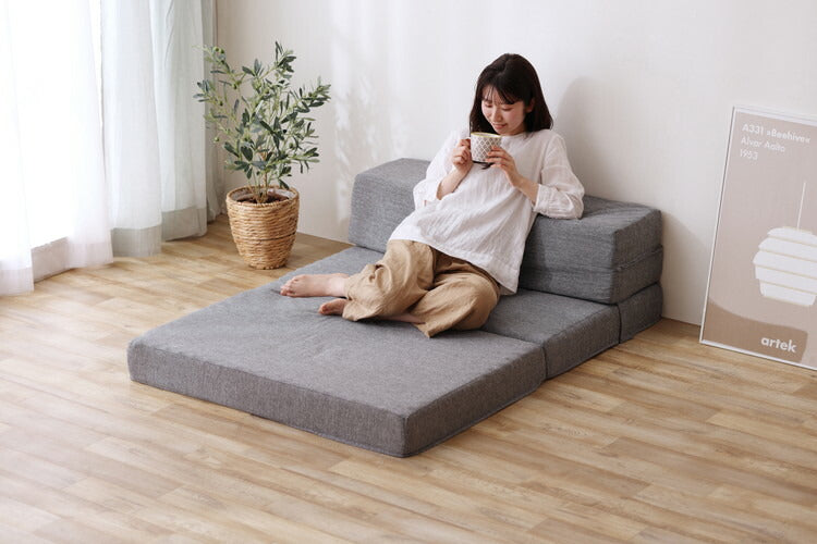 マットレス、枕付きマットレス、カウチ、ソファとして使える4WAYタイプのマットレスです。折りたたみ方を変えるだけで、用途に合わせて使い方が自由に選べます。厚さ約12cmとボリュームがあり、床つき感なくご使用いただけます。マットレスを触って凸凹がある面が上になります。(※枕付きマットレスタイプ時を除きます。)マットレス時は、単品での使用や敷き布団と合わせてご使用いただけます。枕付きマットレス時は、頭部を折り返すと枕付きマットレスになります。カウチ時は、頭部を三つ折りにすることで、背もたれができ、脚を伸ばしてくつろげます。ソファ時は、四つ折りにするとコンパクトなソファになります。波型のウレタンフォーム(プロファイル加工)が点で体を支えます。側生地は洗濯可能です。使用しない時は三つ折りにしてコンパクトに収納できます。ロール状に圧縮梱包されています。開封後すぐにご使用いただけます。開封後、数日で本来のサイズに復元しますが、復元後は元のロール状態に戻すことができません。