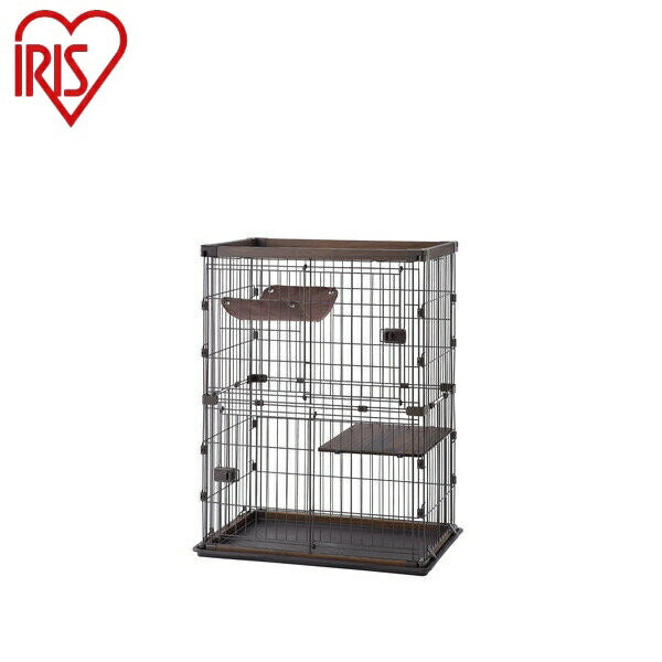 アイリスオーヤマ ウッディキャットケージ2段 猫 ケージ 2段 ウッディキャットケージ2段 PWCR-962V ライトナチュラル 木目調 猫 ゲージ ハンモック 棚板 留守番 スライドドア 室内 屋内 IRIS OYAMA(代引不可)