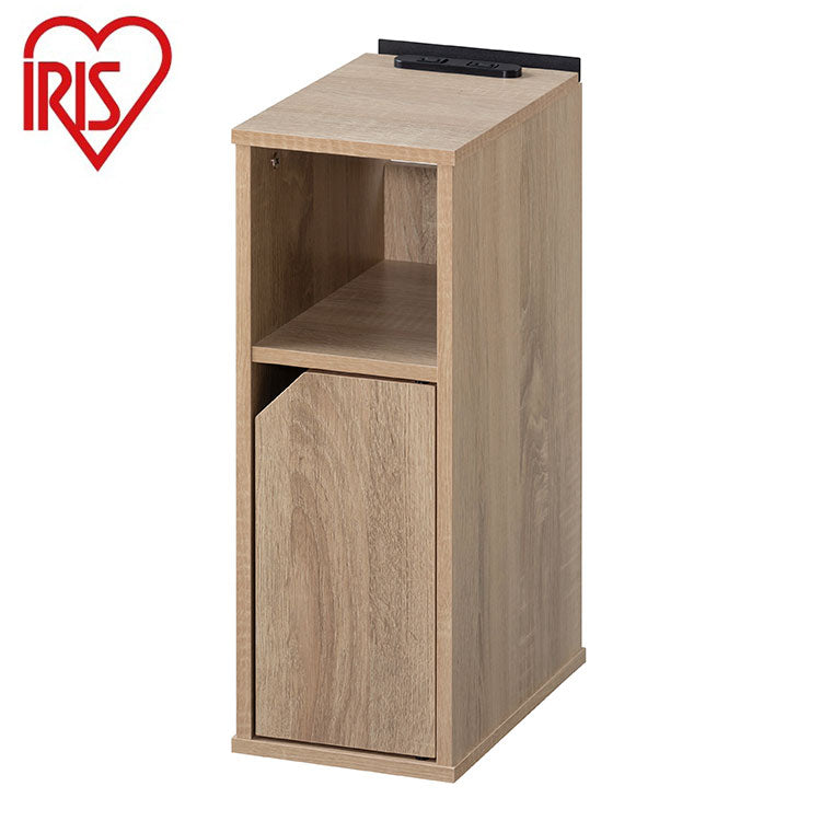 アイリスオーヤマ ナイトテーブル 扉付き 幅18 サイドテーブル コンセント ナイトテーブル ベッドサイド スマホスタンド付き 扉 収納付き 隙間収納 すき間収納 ライトナチュラル NTB-180T IRIS OYAMA(代引不可)