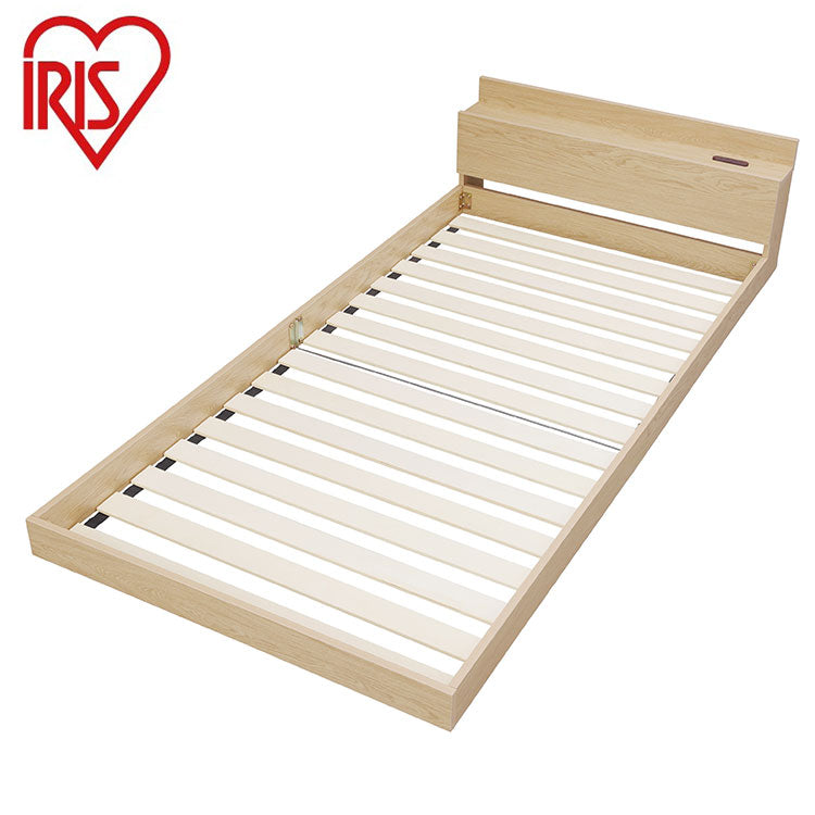 アイリスオーヤマ フロアベッド S シングル ローベッド 2口コンセント 宮付き 棚付き 宮棚付き ヘッドボード ベッドフレーム すのこ ナチュラル FBM-S IRIS OYAMA(代引不可)