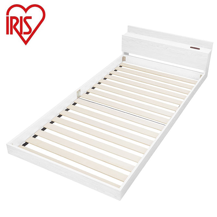 アイリスオーヤマ フロアベッド S シングル ローベッド 2口コンセント 宮付き 棚付き 宮棚付き ヘッドボード ベッドフレーム すのこ ホワイト FBM-S IRIS OYAMA(代引不可)