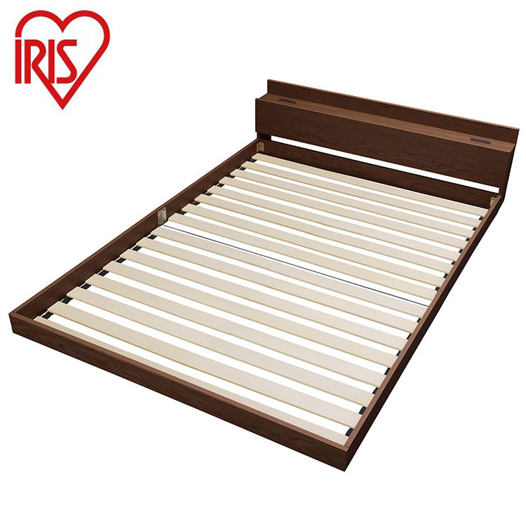 アイリスオーヤマ フロアベッド D ダブル ローベッド 2口コンセント 宮付き 棚付き 宮棚付き ヘッドボード ベッドフレーム すのこ ブラウン FBM-D IRIS OYAMA(代引不可)