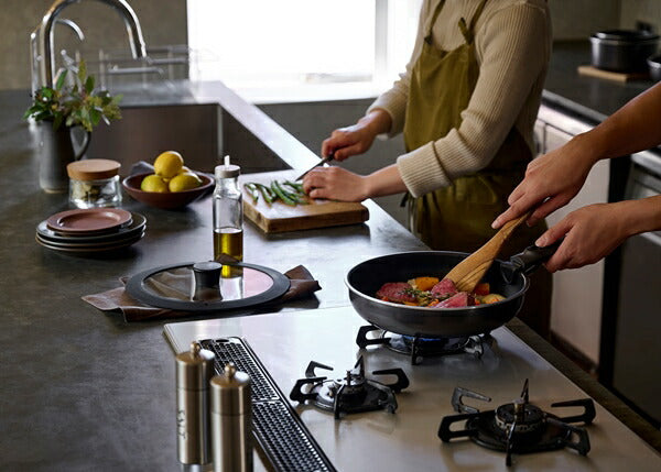 【フライパン・なべ・エッグパン】表面加工/内側:ふっ素樹脂塗膜加工、外側:焼付け塗装(底面を除く)、材質/本体:アルミニウム合金(はり底含む底の厚さ4.5mm)、はり底:ステンレス鋼(クロム16%) 【ガラスふた】ふた本体:強化ガラス(全面物理強化)、ゴム部:シリコーン 【PEシールふた】原料樹脂:ポリエチレン、耐熱温度(約):80℃ 【マルチハンドル】樹脂部:フェノール樹脂、ナイロン、金属部:ステンレス鋼(クロム18%、ニッケル8%)、ゴム部:シリコーン