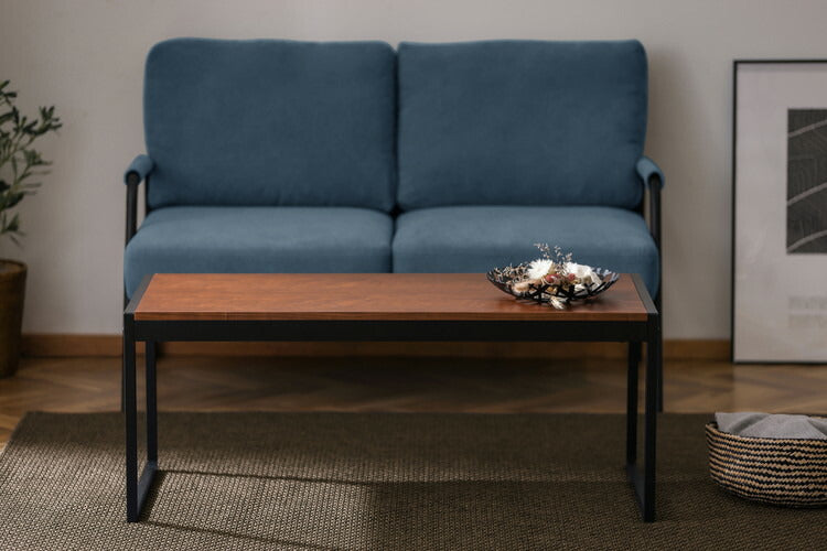 天然木とスチールをミックスすることで、お部屋をスッキリとした印象にするセンターテーブルです。天板には高級感のある突板を使用しています。スチール脚と天板をフラットな面に合わせることで、シンプルながらもデザイン性に優れた仕上げになっています。ゆったり使えるサイズです。お客様組み立てとなります。